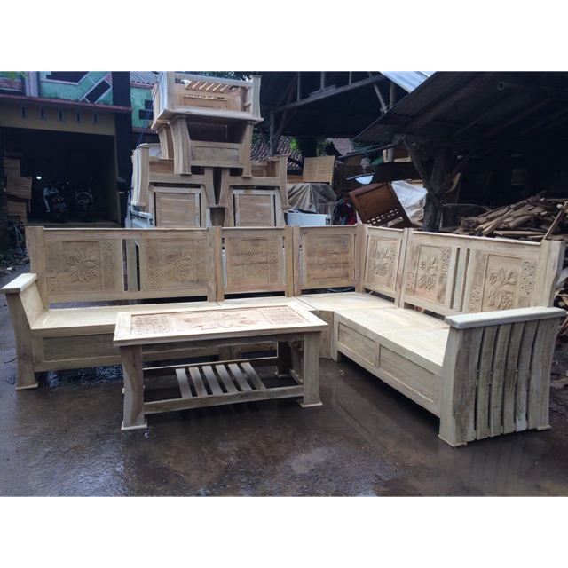Jual Meja Kursi Tamu Kaki Gajah Mentahan Jati Ukir Jepara Free